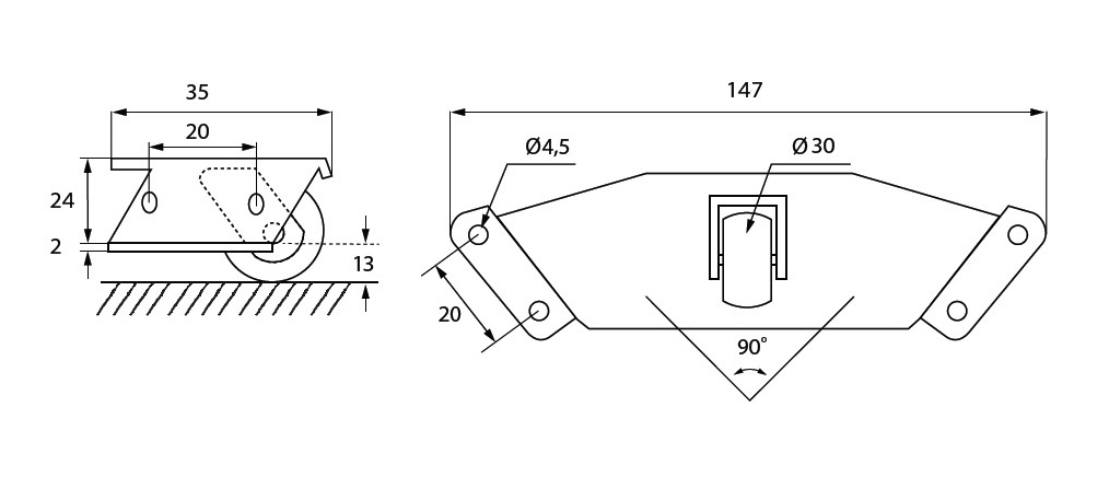 Pufhjul "Darcus" ø30 - 147x37mm Hjørnebeslag