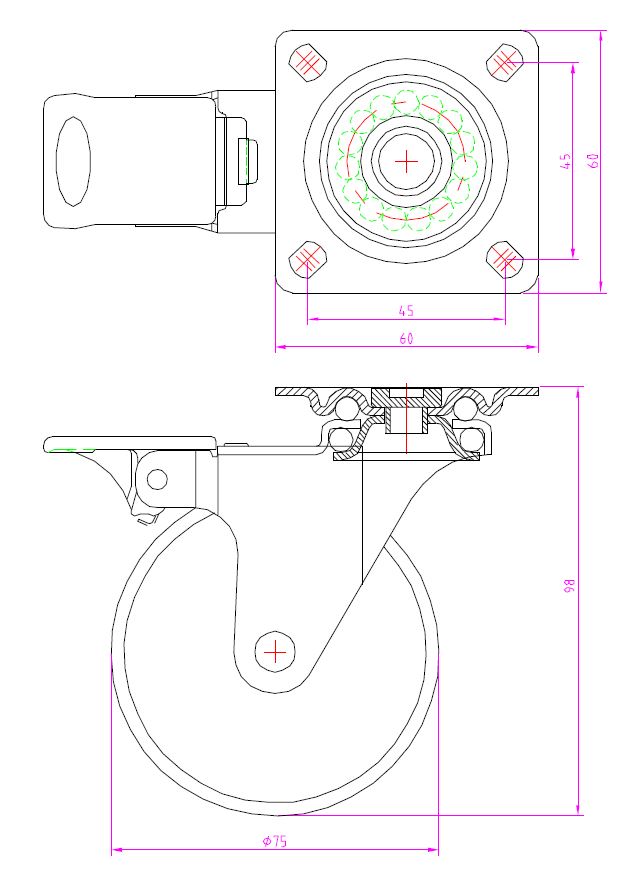Møbelhjul "Gallus" ø75mm - Aluminium - med Bremse