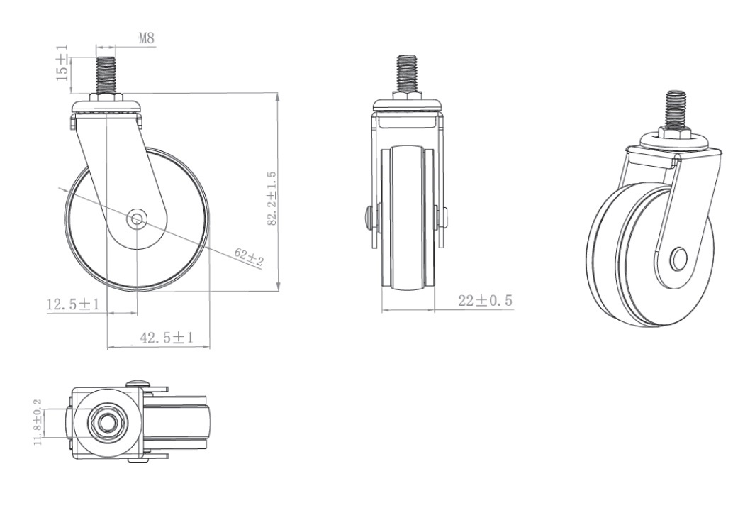 Møbelhjul "Hadrian" ø62mm - Sort/Bøg