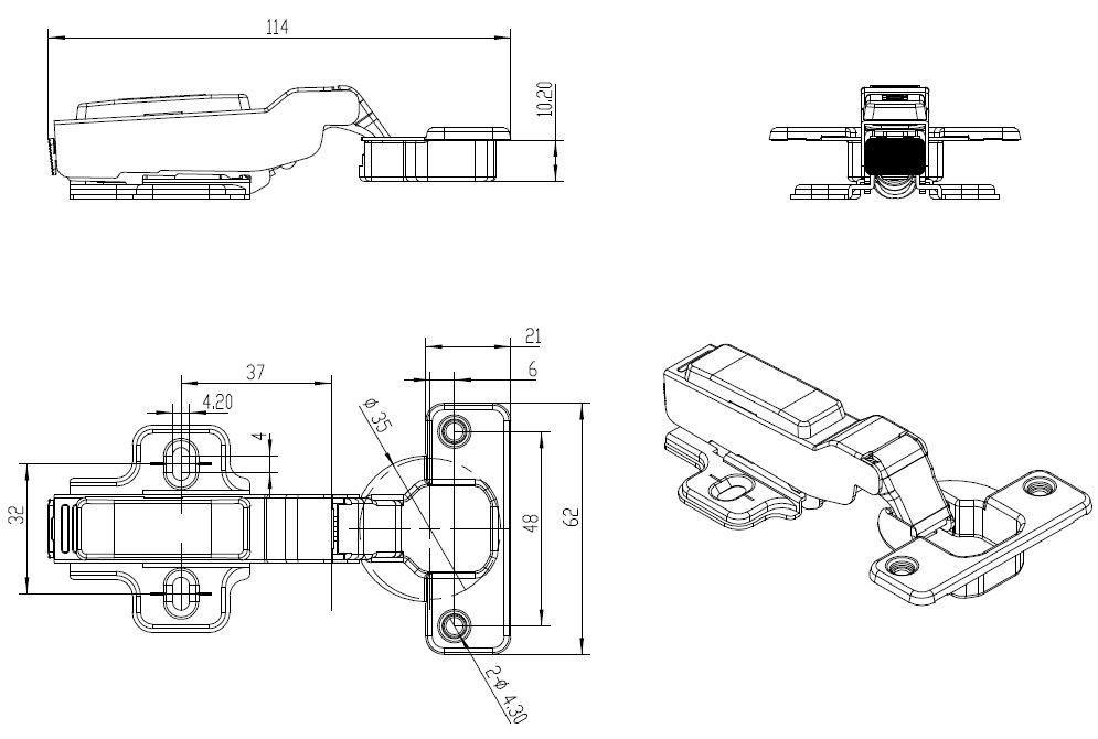 Hulafstand (cc): 48 mm - hullerne forskudt 6 mm fra centrum af ø 35 mm kop.