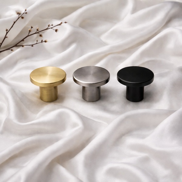 Den moderne møbelknop Rhea kombinerer enkelt design med funktionalitet og giver et stilrent udtryk til både skabe, skuffer og vægge. Knoppen er fremstillet i robust zamak og fås i tre varianter: børstet stål look, sort eller børstet messing look.