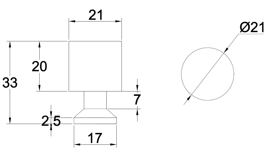 - Mål: ø21 x 33 mm.
