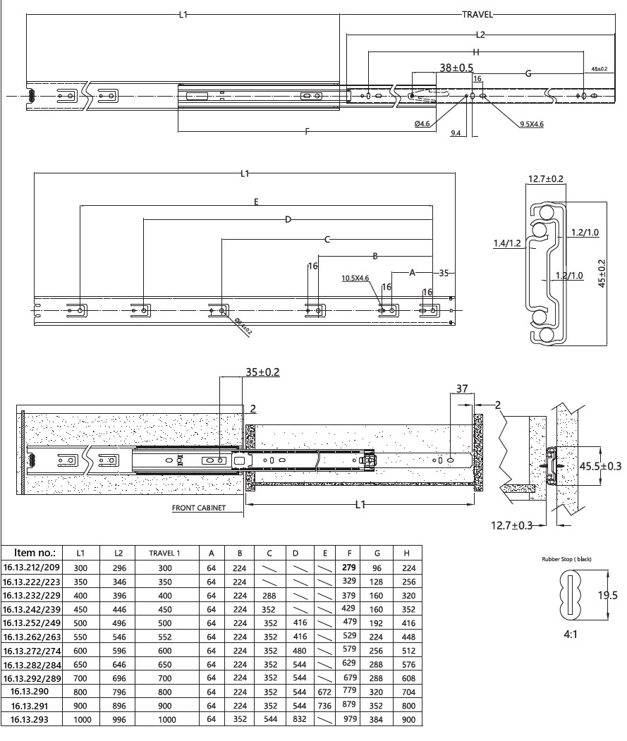 Skuffeskinne 45x900mm - Fuldudtręk - Elforzinket