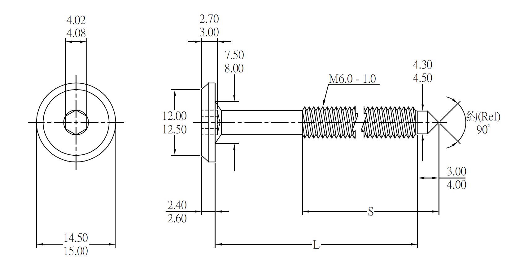 Møbel samleskrue med M6 gevind og fladt affaset hoved.