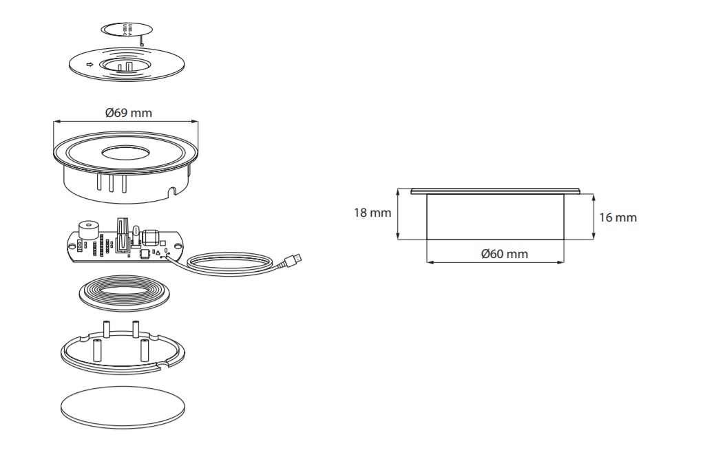- Perfekt til montering i køkkenborde, skriveborde, natborde, skabe m.m.