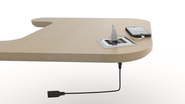 USB-fordeleren “Brenz” er en elegant og praktisk løsning til skriveborde, mødeborde og arbejdsstationer, hvor der er behov for nem adgang til flere USB-porte.