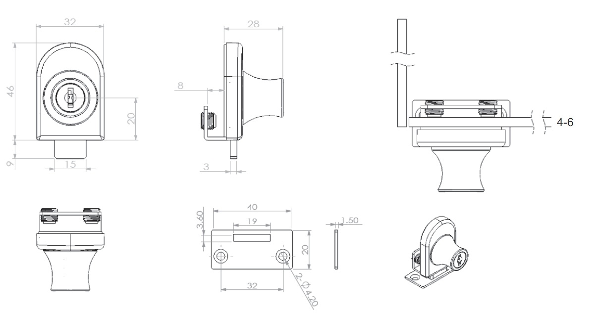 Vitrineskabslås "Fulla" til 4-6mm Glas - Sort