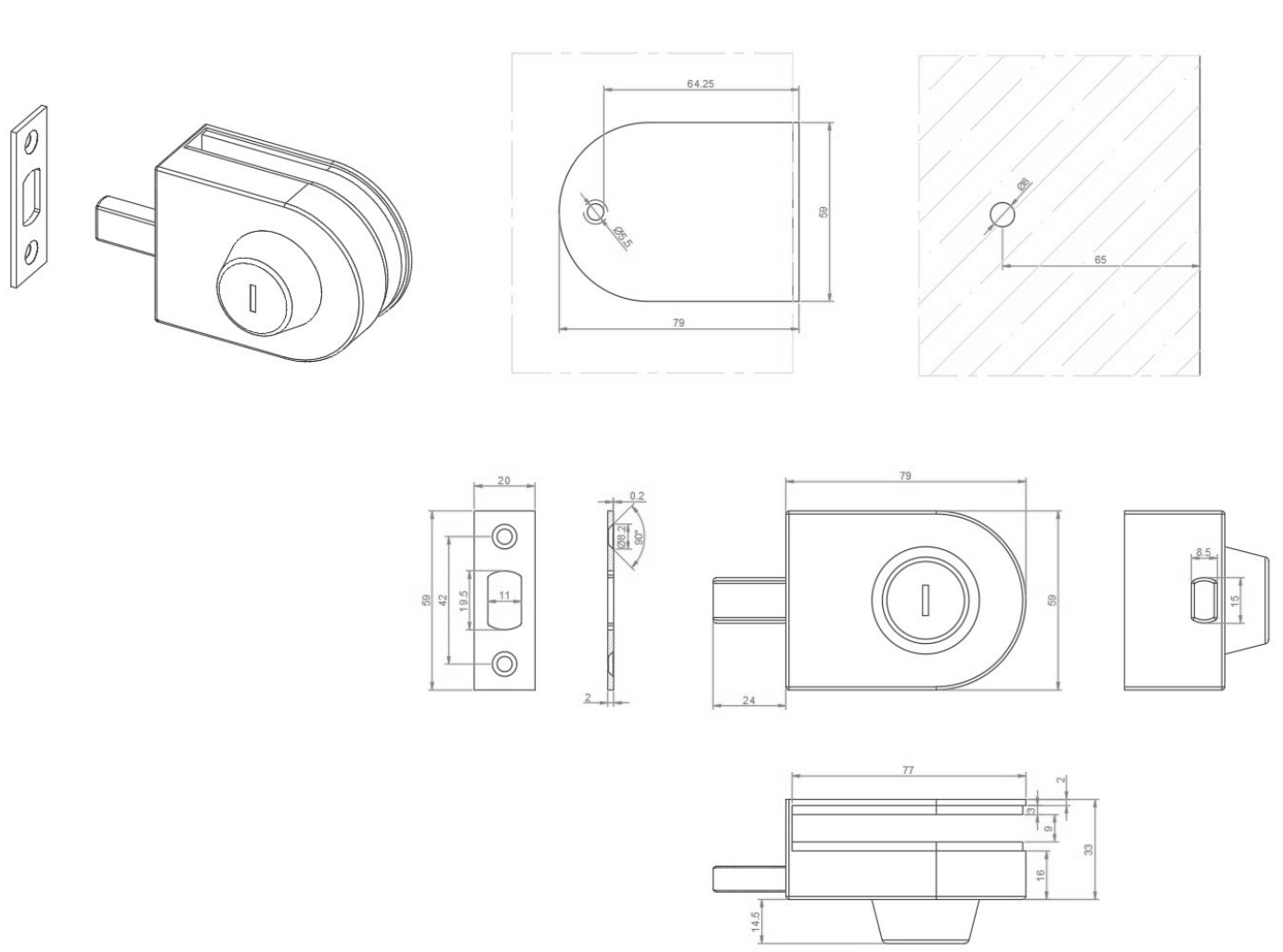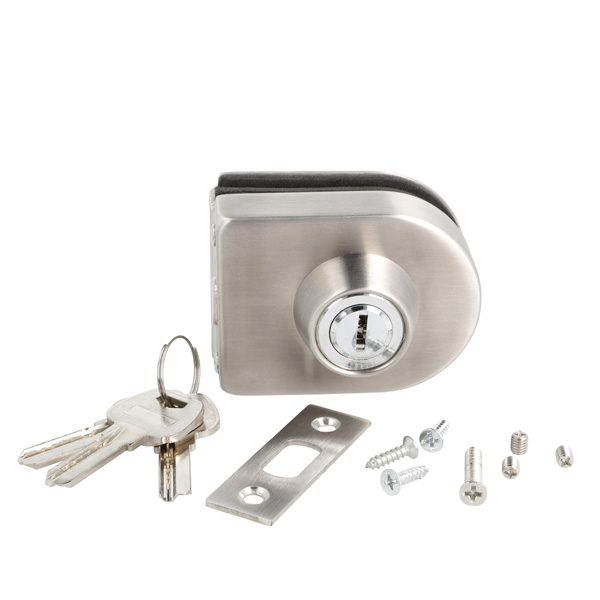 Denne glasdørlås er en elegant og sikker løsning til glasdøre og vitriner. Låsen monteres direkte på glassets kant uden behov for hulboring, hvilket gør installationen både nem og skånsom for glasset.