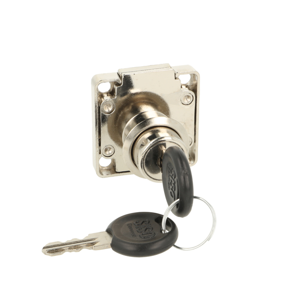 Denne standard skuffelås/skabslås er en klassisk og driftssikker løsning til låsning af skuffer, skabe og mindre møbler. Låsen er forniklet og har et enkelt, neutralt design, der passer til de fleste møbeltyper.