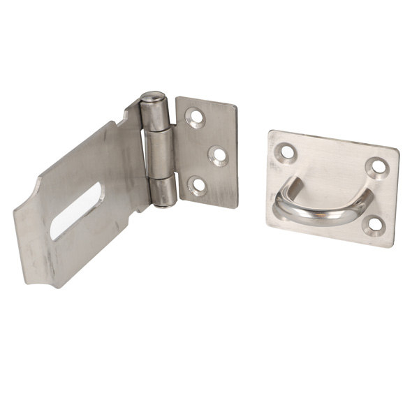 Robust og funktionelt hængelåsoverfald i rustfri stål, ideelt til sikring af døre, kasser, skabe og andre opbevaringsløsninger. Overfaldet er designet til brug sammen med hængelås, hvilket giver en enkel og effektiv aflåsning (hængelås købes separat).
