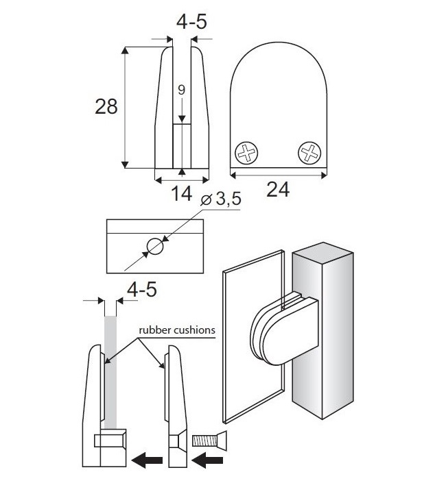 Glasklemme i zamak - forkromet, til 4-5 mm glas