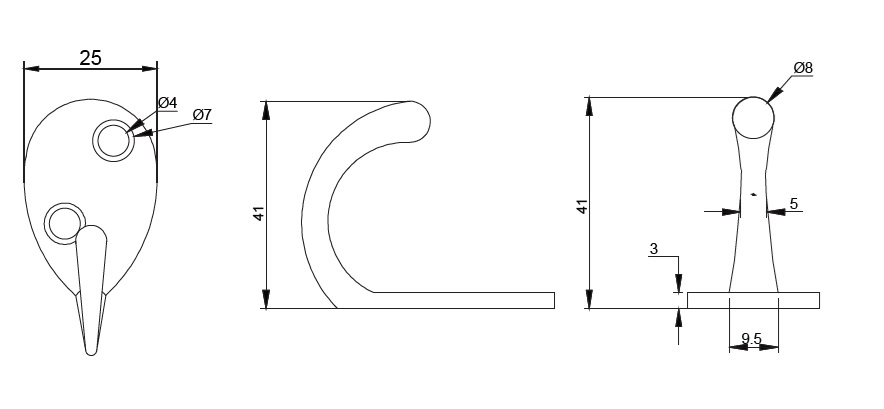 Klasisk knage med 1 krog, inklusiv 2 monteringsskruer.