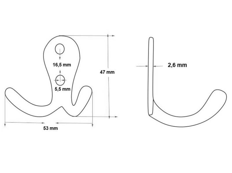 Klasisk knage med 2 kroge, inklusiv 2 monteringsskruer.