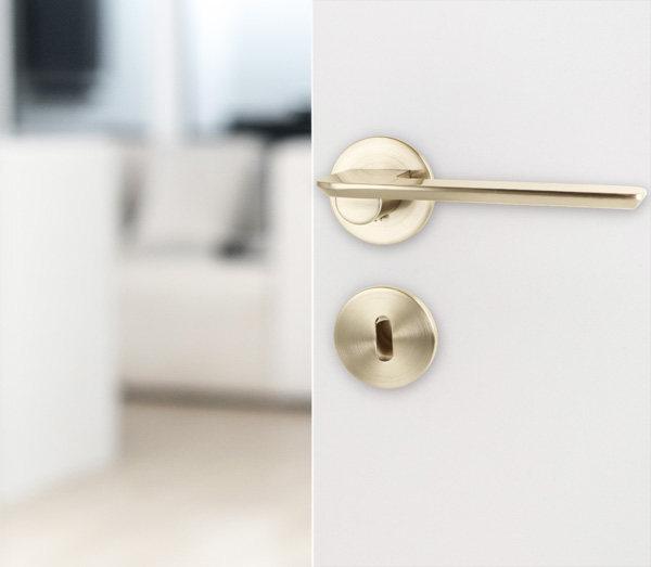 Eksklusivt og elegant dørhåndtag med minimalistiske rosetter, som passer til de fleste indretninger.