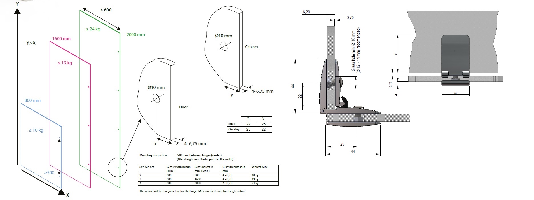 Dette hængsel en elegant og funktionel løsning til montering af glasdøre, glaslåger eller glasafskærmninger, hvor to glasflader samles. Hængslet er designet til at give et stabilt og sikkert greb om glasset - og giver samtidig et stilrent og eksklusivt udtryk.