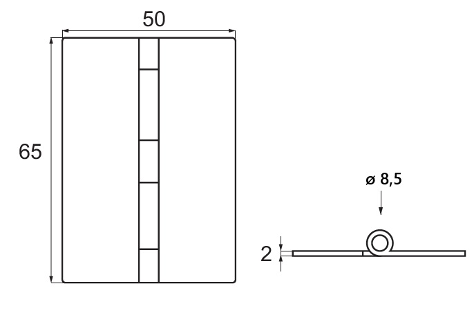 Kanthængsel - Poleret Rustfri Stål - 65x50x2mm
