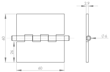 Kanthængsel - Forkromet Messing - 60x60x2,9mm