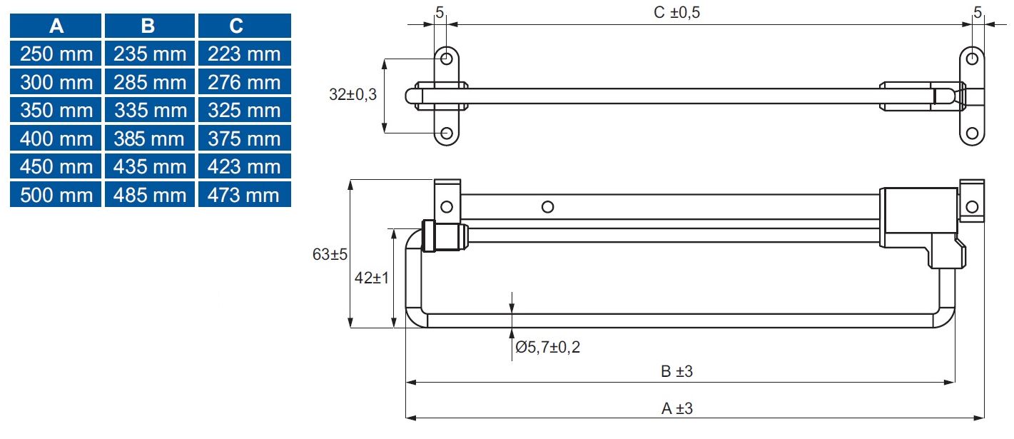 Udtræksbøjlestang 250mm - Elforzinket/Sort