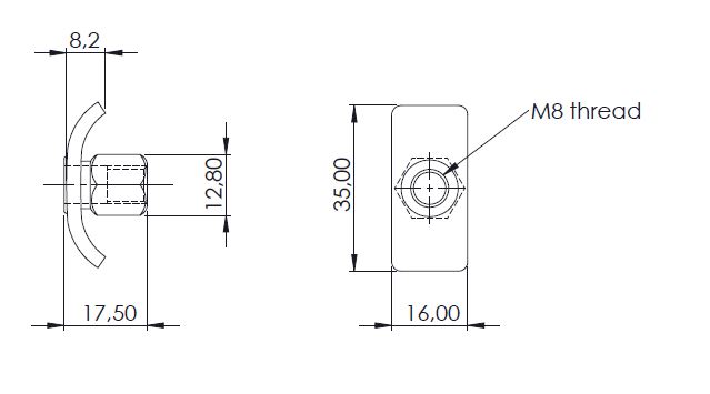 Metalskive med præmonteret M8 sekskantmøtrik.